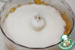 Измельчить абрикосы при помощи блендера.
