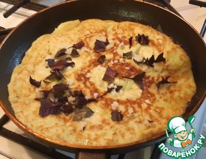 Выложить начинку слоями. Сначала - базилик и чеснок.