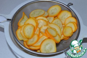 Когда овощи дадут сок, кабачки промыть в холодной воде и отжать.