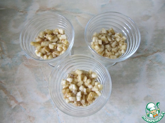 Бананы порезать на мелкие кубики.