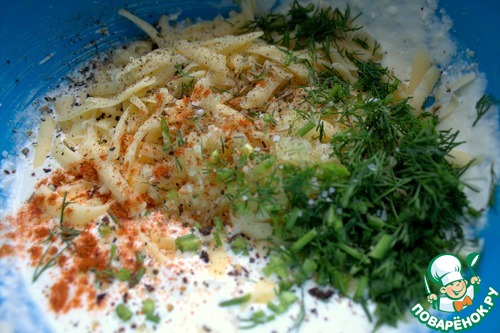 Порубить в состав зелень, у меня укроп и любые специи.