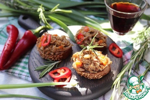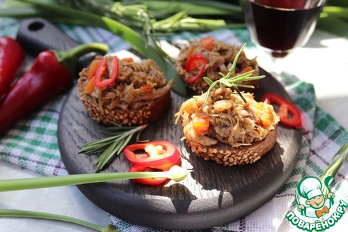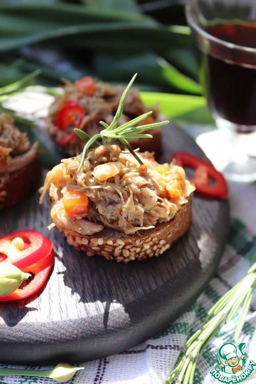 Для подачи нужно положить рийет на поджаренные ломтики багета.
