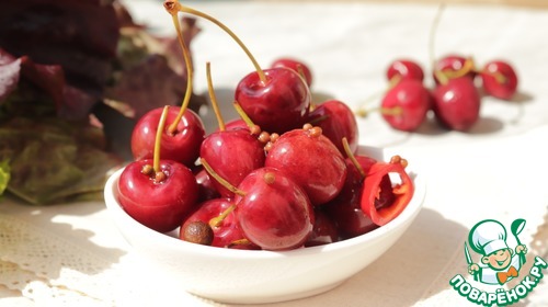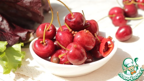 Подавать маринованную черешню как закуску к сыру, вину. Такая черешня эффектно смотрится как украшение к запеченому мясу или птице.