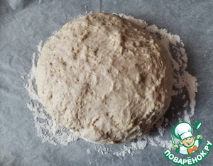 Придать нужную форму тесту (шар, овал, хоть квадрат), выложить на противень, застеленный пергаментом и присыпанный мукой. Накрыть полотенцем и оставить минут на 20-30. -