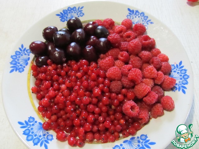 Для киселя берем любые красные ягоды. У меня красная смородина, малина и черешня. Ягоды помыть, у черешни удалить косточки.