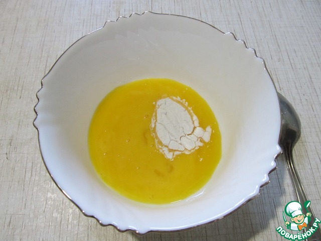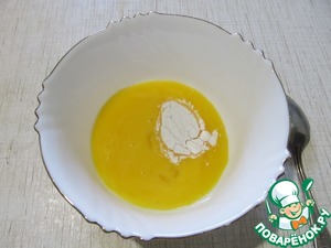 Желток смешать с крахмалом.