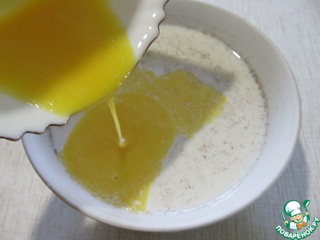Молоко подогреть с ванильным сахаром и слить в него желток.