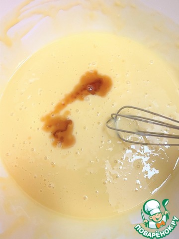 Добавить ванильную эссенцию и хорошо размешать. Желтки взбивать не надо, всё делается венчиком.