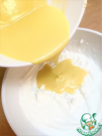 Всё желтковое тесто влить во взбитые белки.