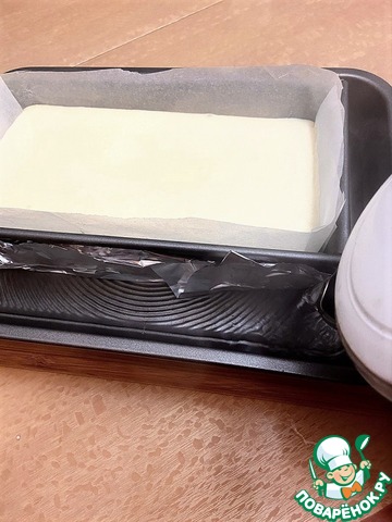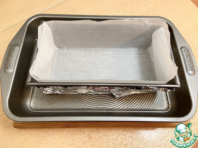 Обернуть низ формы фольгой и выстелить внутри пергаментом.