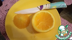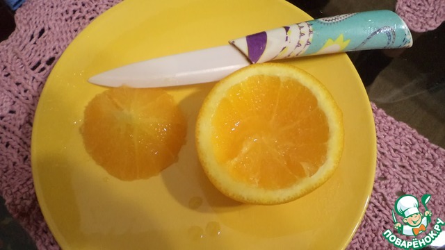 Апельсин вымыть, обсушить и разрезать на 2 части