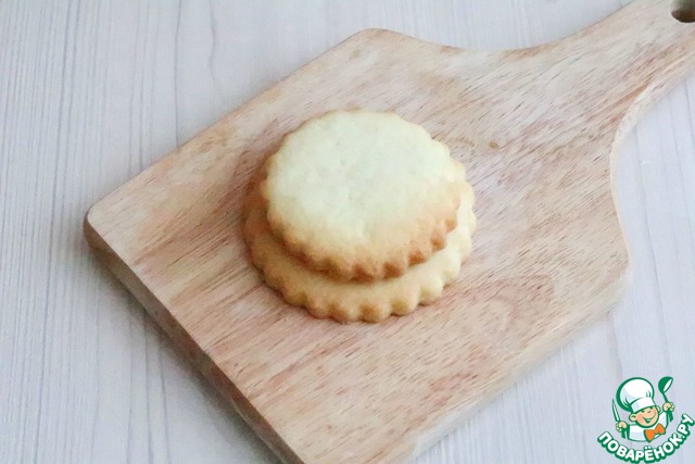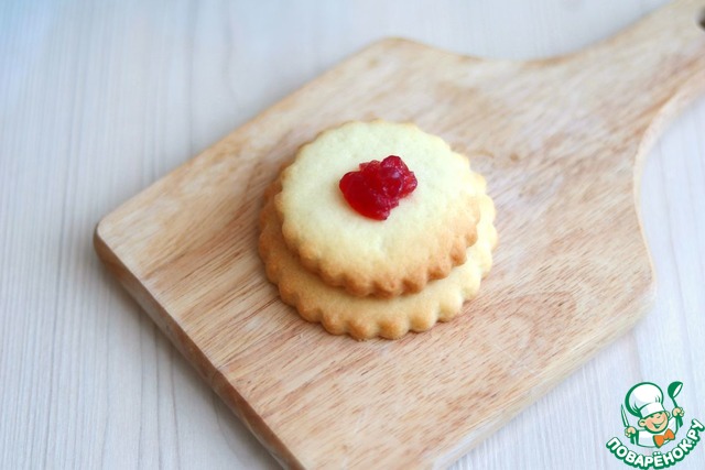 На песочный круг бОльшего размера добавить чайную ложку джема, в данном рецепте использоваля вишневый джем.