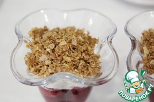 Перед подачей посыпать десерт сладкими хрустящими хлопьями.