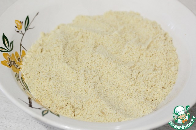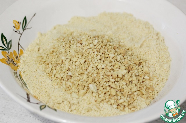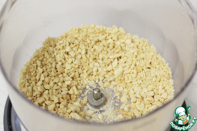 Печенье измельчить при помощи блендера или кухонного комбайна.