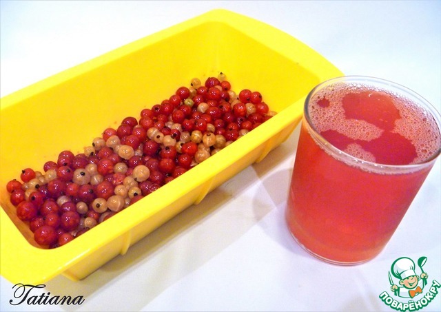 Десерт готовится в прямоугольной силиконовой форме ( в виде террина) 20*10*6=1 литр. На дно формы выложите ягоды смородины (200 г.), сверху влейте компот с желатином, уберите форму в холодильник ~ на 1 час.