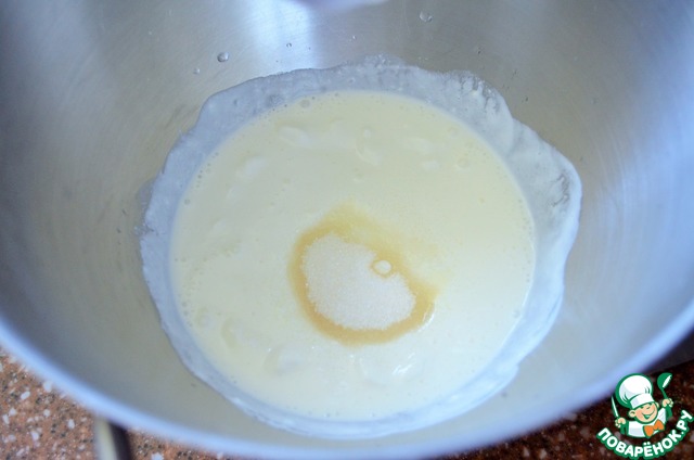 Смешать йогурт, сливки, тёплую воду, добавить сахар и соль.
