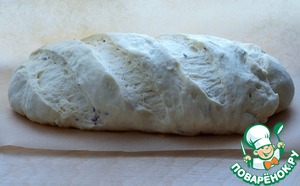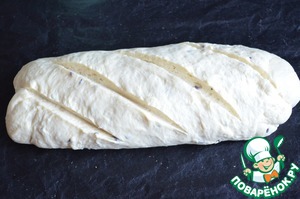Тесто обмять, сформовать заготовку хлеба. Острым лезвием надсечь тесто.