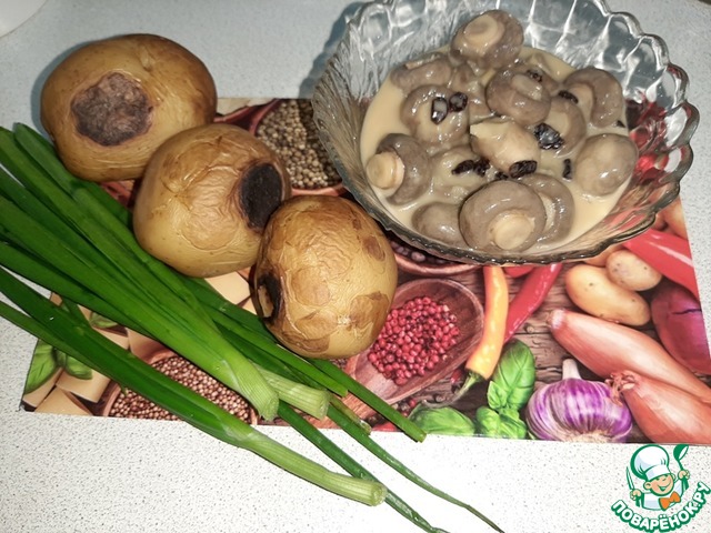 Подать маринованные грибы с зеленью к картошке в мундире.