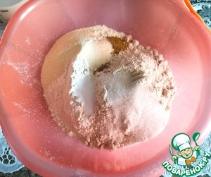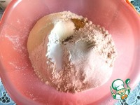 Просеять в чашу пшеничную и овсяную муку, всыпать туда зиру, соль, сахар, хмели-сунели и манную крупу. Перемешать. |