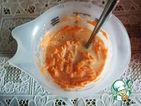 Дрожжи растворить в ряженке. Морковь натереть на крупной тёрке и всыпать в ряженку, туда же влить кукурузное масло. Смешать. |