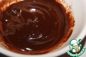 Нагреть сливки и залить ими нарезанный шоколад, через минуту перемешать до однородности. Накрыть пленкой и отправить в холодильник. -