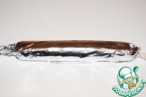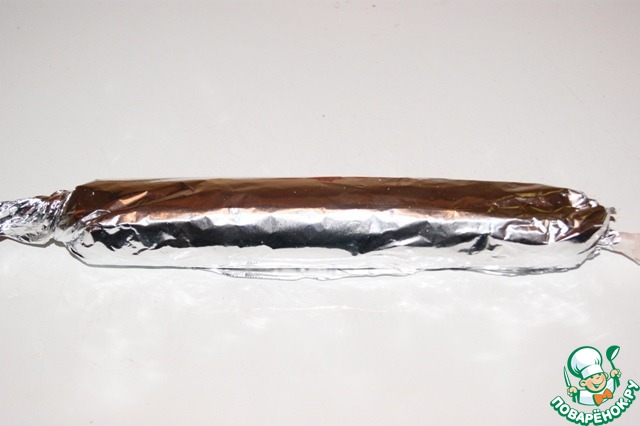 Очень плотно скрутить в рулет. Завернув в бумагу и фольгу и отправить в морозилку на 1 час.