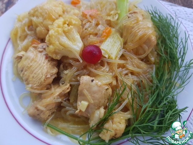 Рецепт «Мясо с овощами и рисовой вермишелью»: