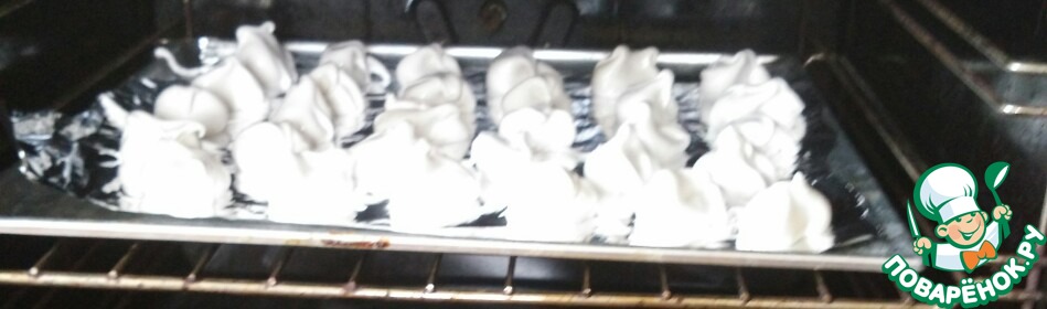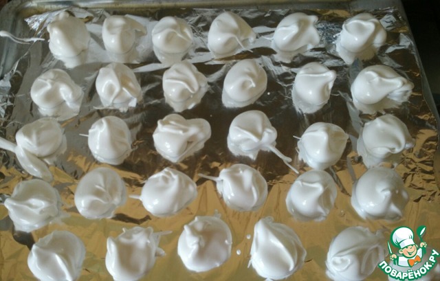 Противень застелите фольгой, туда аккуратно чайной ложечкой выложите небольшие порции крема в диаметре примерно 3 см, на расстоянии 1.5 см. друг от друга.