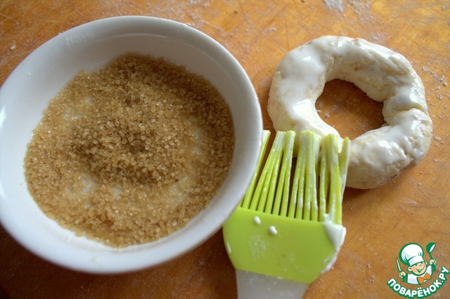 Смазать каждый калачик сметаной или сливками или яйцом.