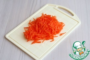 Морковь (1 шт.) на терке для приготовления корейских салатов с мелким сечением.
