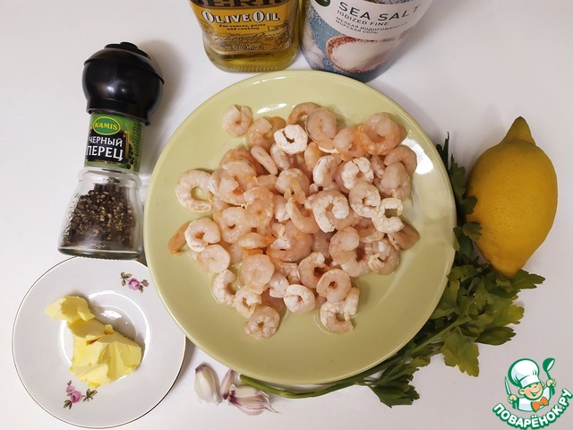 Ингредиенты для «Жареные креветки в чесночном масле»: