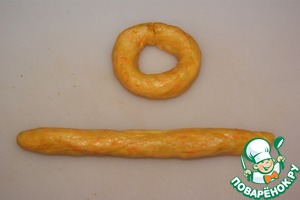 Отщипывая кусочки, величиной с грецкий орех, сформовать сначала тонкие колбаски, которые соединить в круг. Не обязательно, чтобы кулурья были одинакового размера и идеальной формы.