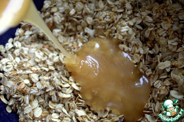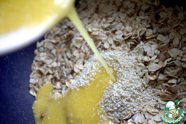 Овсяные хлопья обжарить, помешивая, на сухой сковороде. Хлопья можно разные: быстрой и долгой варки.