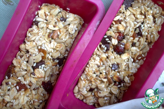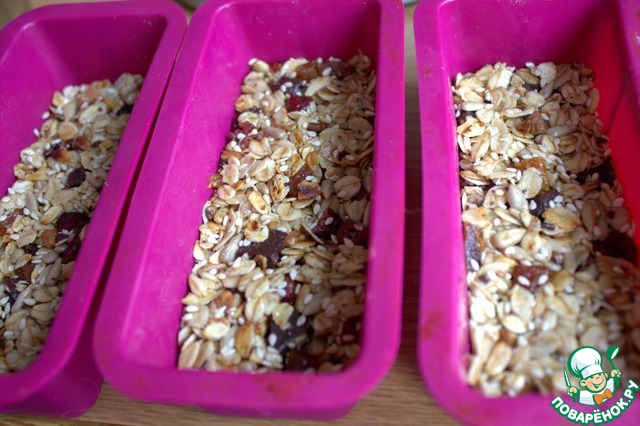 Остальное утрамбовала в силиконовые мини формы. Отправляем батончики в холодильник на ночь или несколько часов.