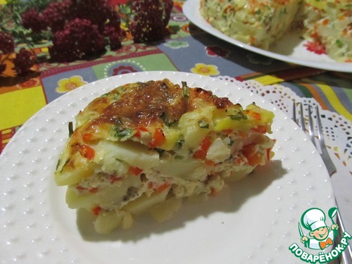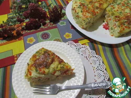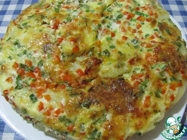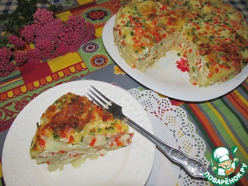 Предлагаю вашему вниманию еще один вариант картофельного торта. Сладкий перец и зеленый лук придают блюду очень красивый цвет и необычно приятный аромат.