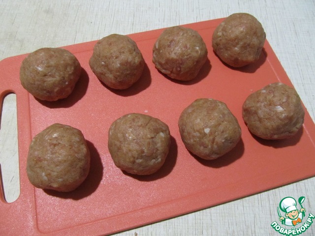 Разделить фарш на 8 колобков.