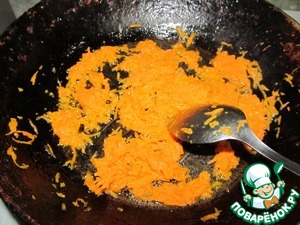 Морковь потушить на сливочном масле, влить бульон и варить 5 минут.