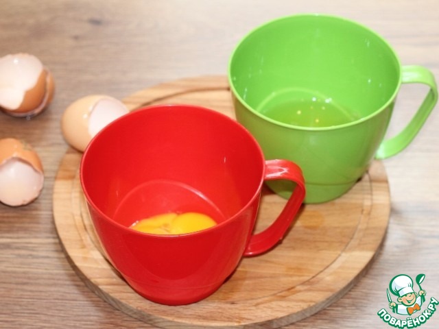 12. Белки отдельно взбейте с солью. Затем добавьте сахар, ванильный сахар и крахмал. Взбейте смесь до крепких пиков.