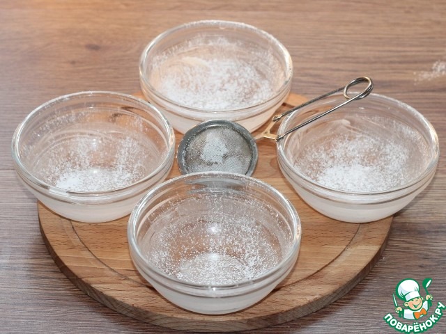 14. Порционные формочки (5 шт) смажьте сливочным маслом и присыпьте сахарной пудрой.