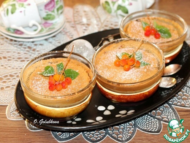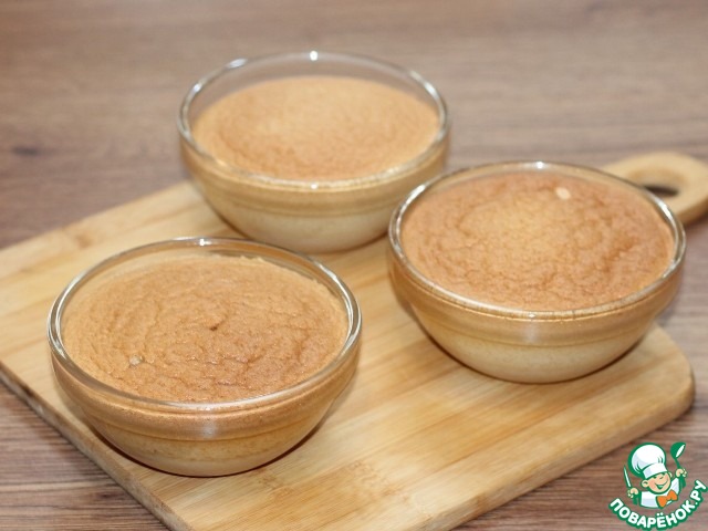 15. Выложите суфле в формочки и поставьте в глубокий противень. Налейте в противень горячую воду, высотой ~ 2 см и поставьте в разогретую до 180 С духовку.