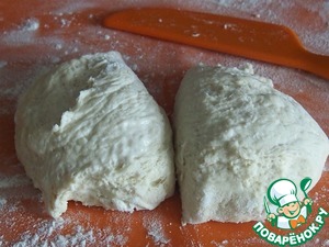 • В миску просеять муку, добавить соль, подошедшие дрожжи и оставшееся молоко, перемешать. Добавить оливковое масло и вымесить тесто. Накрыть полотенцем и оставить в теплом месте минут на 40 для подъема.