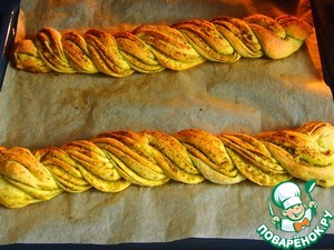 • То же самое проделать со вторым рулетом. Оставить плетенки на 20 минут отдохнуть. Перед выпечкой смазать их оливковым маслом.