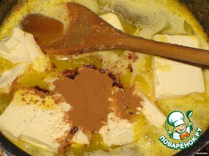 Затем добавить маргарин, корицу, мед, соду и помешивая лопаткой, на медленном огне довести смесь до однородного состояния.
