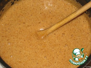 После добавления соды, масса очень увеличивается, возьмите кастрюльку сразу побольше.