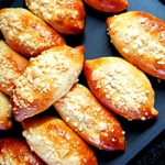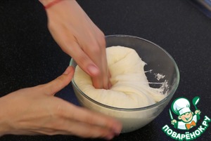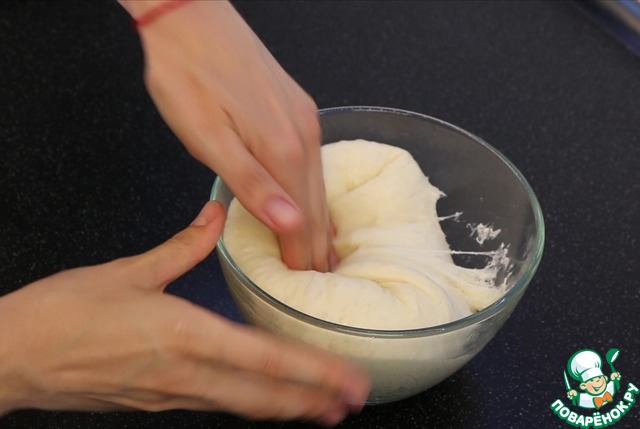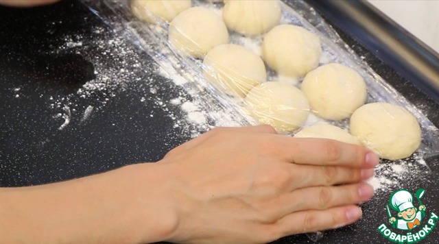 ... делю на 10 равных частей по 55-57г. каждая. Округляю, накрываю пищевой пленкой.