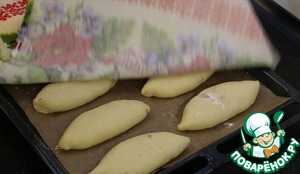 Выкладываю на противень, накрываю полотенцем и оставляю на 20-25 минут.