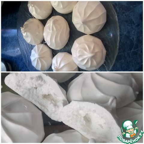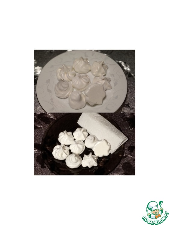Я специально разломала и перевернула безе, чтобы было видно, что дно безе такое же белое как и верх.
