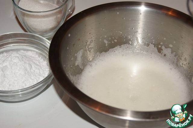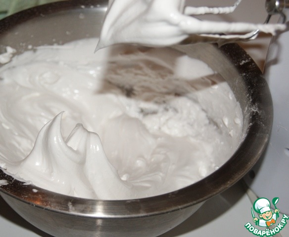 Белки взбить с маленькой щепоткой лимонной кислоты в пышную белую пену.