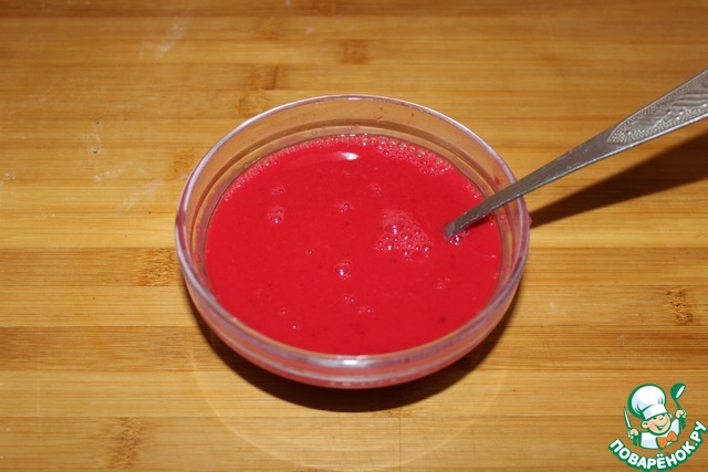 Крахмал разводим в вишневом соке. Хорошо перемешиваем.