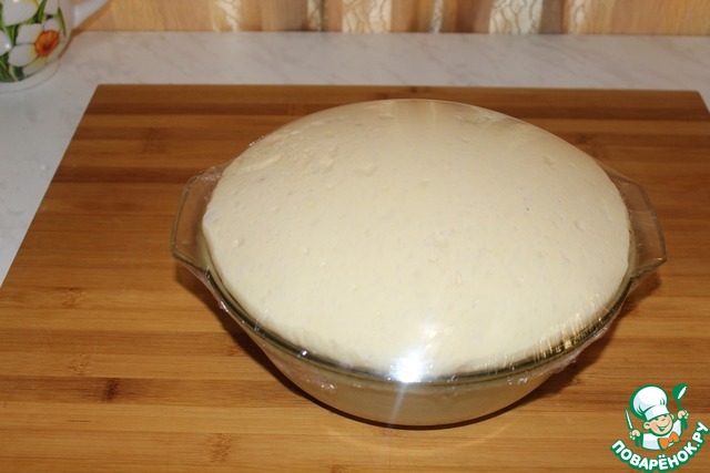 Тесто немного подошло при комнатной температуре. Убираем в холодильник на 1.5 часа.